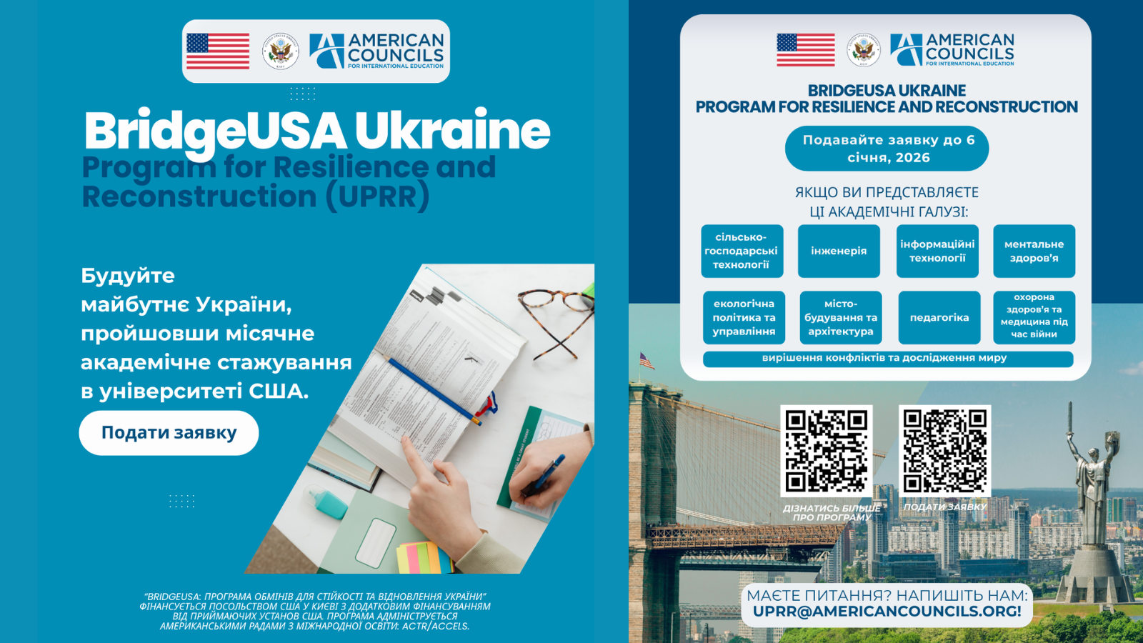 Розпочато прийом заявок на “BridgeUSA UPRR: Програма обмінів для стійкості та відновлення У…